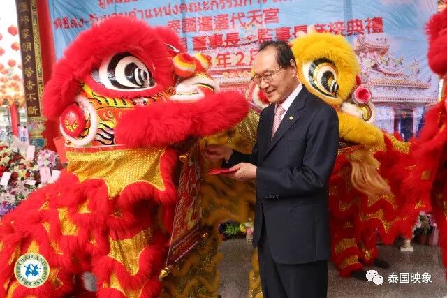 只见现场人声鼎沸,热闹非凡,锣鼓喧天,醒狮舞动伴随着香火弥绕,吉祥的彩云飘在天空之际,坐落在泰国暹罗代天宫是上世纪早年的台湾先辈移居泰国打拼定居此地,同时将台湾的宗教文化引进泰国,祈求在泰国商旅及生活事事顺意,富泰安康。暹罗代天宫凝聚了台湾人的传统理念,文化精髓及奋斗精神,融合泰国本土佛教于一身的宗教场合,又是安顿生活的精神乐土。