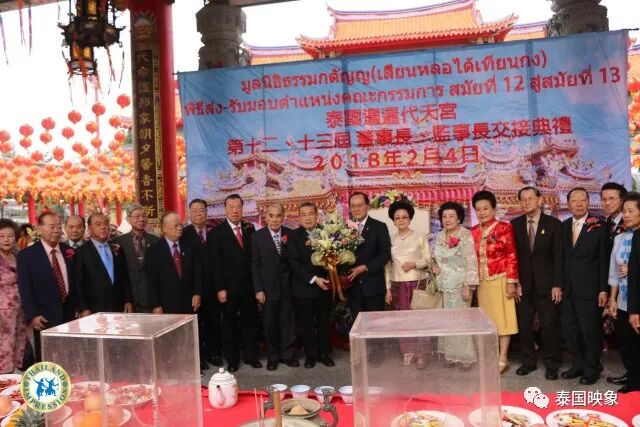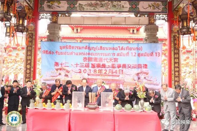 2018年2月4日上午10点,泰国台湾暹罗代天宫迎来吉祥如意的日子,第十二届、十三届理事长及监事长交接典礼暨祭拜活动在泰国暹罗代天宫拉开序幕,本次典礼特邀泰国诸多华人社团的理事长及泰国台湾的各商会理事长以及来自台湾各地的宗族祠堂寺庙的理事长及代表超过二百多位受邀一同入场观摩见证这个历史时刻。