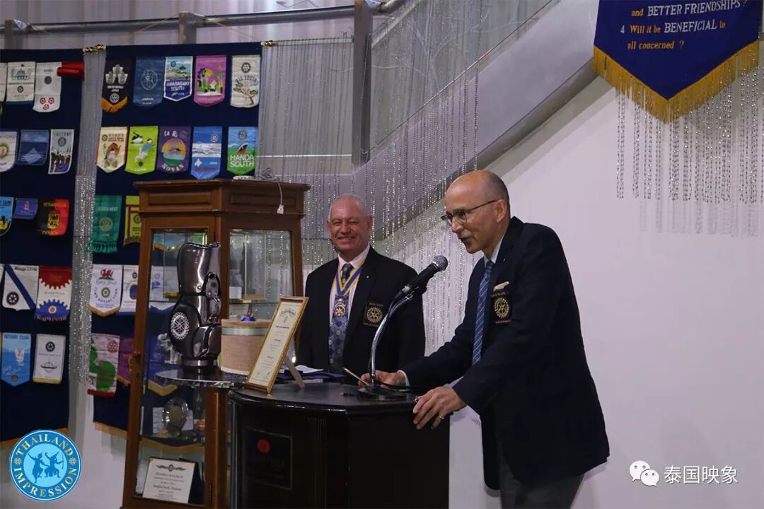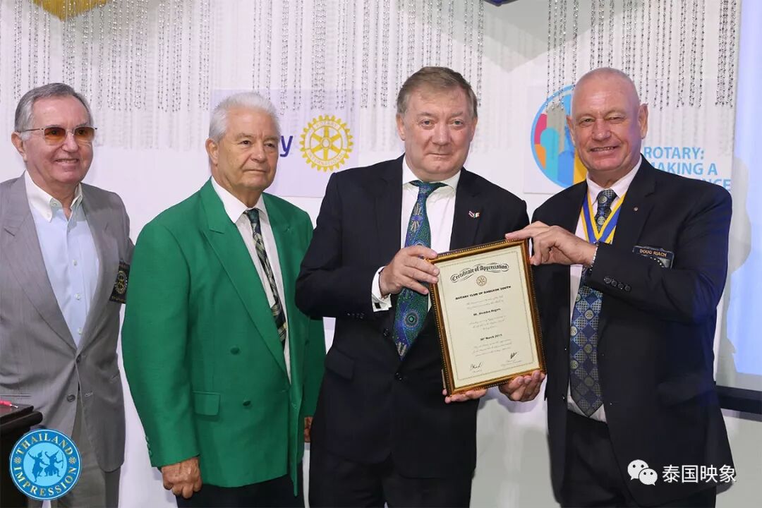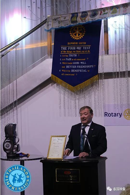 今天是泰國扶輪社會員一周的聚會時間,特邀請愛爾蘭大使閣下親臨現場給在座六十多名扶輪社會員聚餐,現任會長在午餐會上向就座的會員們總結近日的慈善活動日程,上周該社做了一項非常有意義的事情,組織泰國一所孤兒院的三百多名孤兒及殘疾兒童到海邊遊玩,讓這些貧苦的孩子們得到社會照顧和關懷。之後,會長邀請愛爾蘭駐泰大使-布蘭登-羅傑斯閣下,分享其擔任海外大使多年的體會,其高度評價國際扶輪社對當地國家及社會的貢獻,大使談到了泰-愛兩國之間友好交往,愛爾蘭為泰國民間慈善事業也做出一份貢獻。近年來,愛爾蘭打造愛爾蘭品牌走向國際化,在牽手泰國科技發展,提升貿易,推動旅遊等方面,讓泰國攜手愛爾蘭齊步共進,邁入兩國國家發展規劃等。