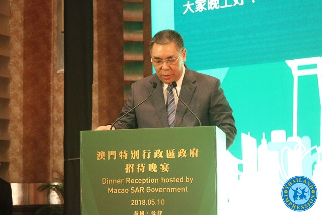 2018年5月10號,由澳門特區行政區政府攜手泰國國家旅遊局在泰國曼谷舉辦雙邊貿易洽談及旅遊合作大會暨答謝晚宴正式拉開序幕,此次活動由澳門特別行政區崔世安行政長官率領的一支浩浩蕩蕩政府經貿代表團前來泰國舉辦的一場隆重招商洽談會,得到了泰國國家體育旅遊部,泰國各大商會及各大企業等機構鼎力支持和相助。