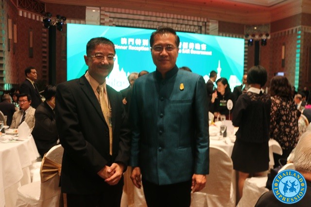 招待晚宴空前盛大,嘉賓雲集。會上主席臺,分別由澳門特別行政區長官崔世安特首及泰國國家體育旅遊局局長維拉撒閣下代表各自的合作方分別上臺致辭,彼此表達雙方合作的共同意願和無比的信心,展望雙方合作的未來廣闊發展和前景,兩位高官洋溢一番各自的旅遊優勢、經貿條件以及未來的發展大綱和規劃,就泰國國家政府和中國澳門特區政府之間的政府職能展開官方及民間合作新的框架合作模式,賓主互動美好的語言交流,為在場的眾多嘉賓描繪了一幅宏偉的燦爛藍圖,甚是振奮人心。