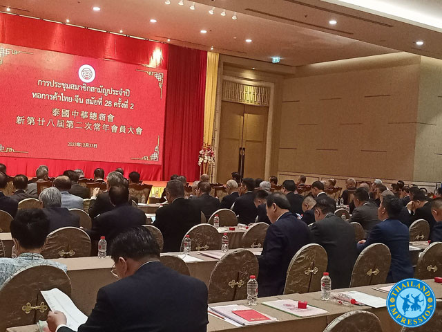 2023年12月23日泰國中華總商會舉辦年度最後壹次會董會議,來自泰華各個商會的理事長雲集其中,聆聽工作報告。作爲泰國泰華商會的龍頭老大,秉承百年的曆史,在海內外彰顯其華人社團特色,發揮其國際影響力和感召力,此次活會議將通報本年度的活動動態,大屏幕反複播放該商會遊走于國際舞台的業績視頻,在現任林楚欽領導下密切加強與中國、東盟及國際友人交往,配合中國政府宣導壹帶壹路在泰國牽線搭橋,壹年內該會館所做的社會貢獻,接待中國各省的政府及民間商貿代表團應接不暇,爲泰中兩國打造強有力的民間紐帶,其業績有目共睹。其連續舉辦數場具有國際影響力的大型會議,世界華商大會,代表泰國出席中國廣交會、雲商會以及中國政府舉辦的世界華人華僑大會,博鳌論壇等等,數不勝數。秉承泰國百年華人會館的傳統,作爲百家華人團體的最高燈塔,指引各商會的發展和路線,其表演的泰國最重要的社團角色日益增加,其是泰國華人心目中的最高商團機構,也是凝聚力泰國華人力量的高度載體和權力中心,不言而喻,壹年其所創造的外交業績及社會效益在疫情期間捐資捐物,修建泰國學校等慈善活動,爲泰國政府出謀劃策更是標榜在上,幾年裏,該會館加強與泰國數位總理及最高檢察院檢察長等互訪及訪問,努力打造泰國華人新氣象,爲泰中兩國架構新時代的友誼橋梁,大會通報出席會員本度的財政報告,同時選出29新任主席–林楚欽繼續蟬聯高位。
