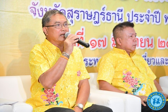 ดร.ปัญญา หาญลำยวง รองปลัดกระทรวงการท่องเที่ยวและกีฬาพร้อมด้วย นายสุทธิพงษ์ คล้ายอุดม รองผู้ว่าราชการจังหวัดสุราษฎร์ธานีร่วมแถลงข่าวโครงการส่งเสริมการท่องเที่ยวในพื้นที่กลุ่มจังหวัดภาคใต้ฝั่งอ่าวไทย “งานประเพณีชักพระ ทอดผ้าป่าและการแข่งเรือยาวชิงถ้วยพระราชทานฯ จังหวัดสุราษฎร์ธานี ประจำปี 2562” โดยจะเริ่มจัดงานตั้งแต่วันที่ 10 – 18 ตุลาคมนี้ ซึ่งถือเป็นเทศกาลและประเพณีที่เป็นเอกลักษณ์ของท้องถิ่นจนนับได้ว่าเป็นมรดกแห่งศิลปวัฒนธรรมของจังหวัดสุราษฎร์ธานี โดยมีนายฑิฆัมพร สุทธิอุดมรัตน์ ผู้อำนวยการสำนักงานการท่องเที่ยวและกีฬาจังหวัดสุราษฎร์ธานีเข้าร่วมแถลงข่าวด้วย ณ สำนักงานปลัดกระทรวงการท่องเที่ยวและกีฬาถ.ราชดำเนิน กรุงเทพฯ