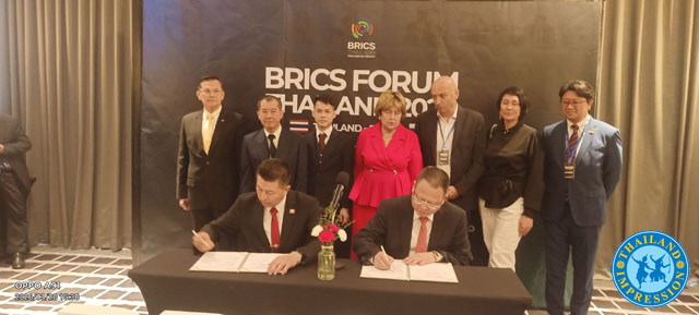 2026年3月20日曼谷迎来金砖国家小型论坛及泰国与金砖组织签约MOU项目暨落定仪式 ,现场百位嘉宾目睹整个过程,金砖组织主席拉丽萨-泽连索瓦女士,李生庚副主席,马国国会议员扎吉里-阿卡-阿迪拉-苏方先生及泰国主办方meichai博士分别登台演讲,各自表述金砖国家在世界上所产生的影响力及表演的重要角色,当今美中关系绷紧,金砖从当初的巴西,俄罗斯,印度,中国及南非五国壮大到十一国家加入,在协会功能上及国际影响力上非同昔日。今日泰国加入金砖组织成为一份子,其在东盟及东南亚所起的作用将撬动地缘政治及经济合作框架,促进金砖国家内部成员的密切合作起了推动作用。金砖国家凭借各自国家的天然资源及基础建设,项目投资,金融合作,道路交通等一一对接携手,共同打造新时代的快速发展轨道,稳定区域安全,亚太环境和谐,中国发挥其大国角色在世界各地和平对等,和平合作,和平对接等对接,今日短暂的七个小时小型论坛,正如阿利萨会长所言,世界在瞩目金砖,金砖也关注世界发展,当今的世界处于高速变化时期,与时俱进,把握前瞻非常关键,金砖伙伴携手共荣,共进及共聚为了一个全人类的目标及实现金砖国家稳步发展,提高国民福祉及幸福而努力。 最后,在温馨而轻快的签约现场展现在诸位嘉宾面前,相约下次论坛吉隆坡相会。